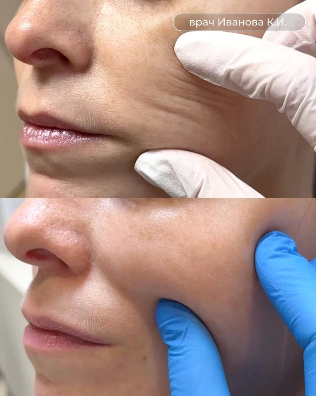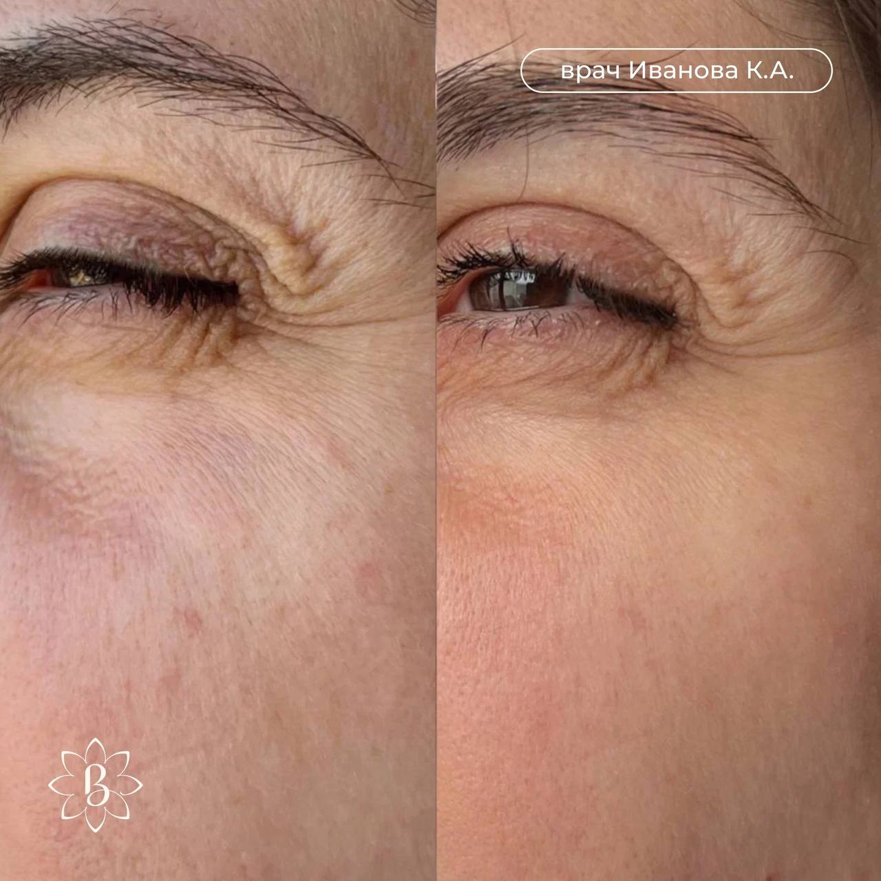 После введения биоревитализантов кожа становится упругой и подтянутой, морщины менее выраженными